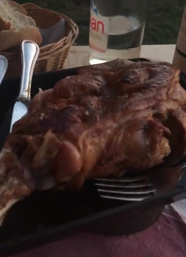 En plat nous avons pris l’Epaule de cochon de lait confite - 12 heures Environ 1,6 kg - accompagnements au choix : purée de pommes de terre légumes et frites