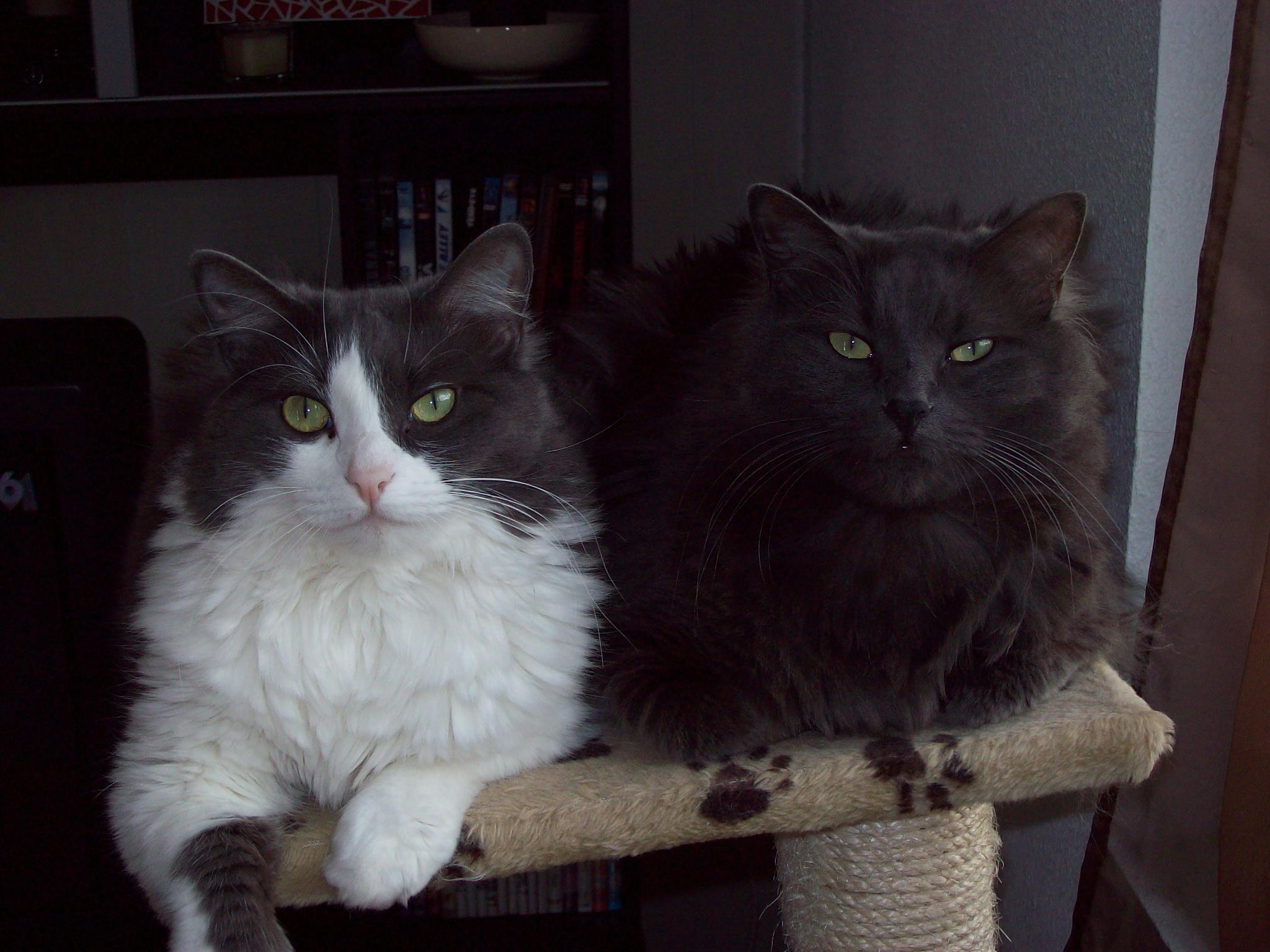 Chats croisés porte et fenêtre comme on dit ....La mère toute grise yeux vert style chartreux et le père un magnifique